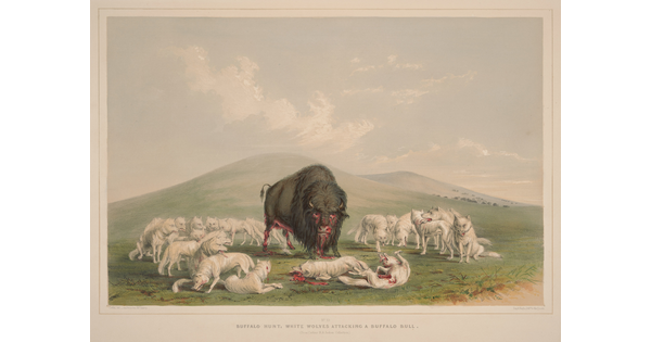 www.cartermuseum.org/.../no-10-buffalo-hunt-white-wolves-attacking-buffalo-bull-1964100