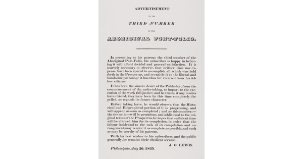 • Advertisement to the First Number of the Aboriginal Port-Folio.