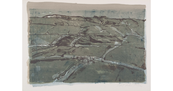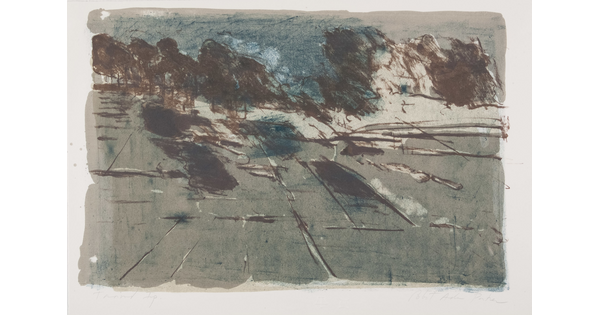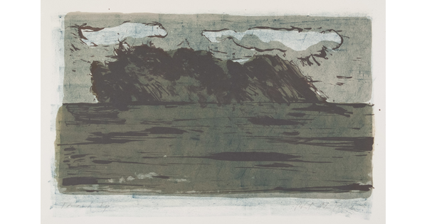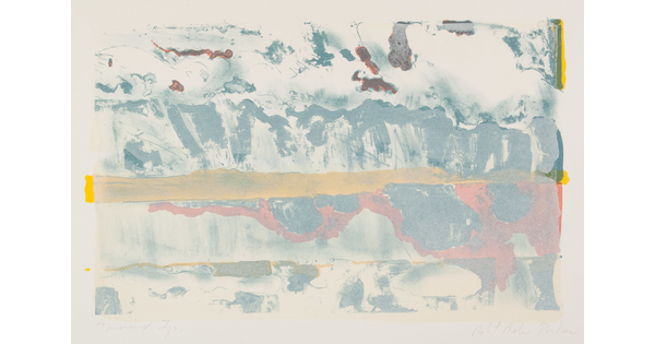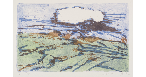 Toned lithograph with applied watercolor