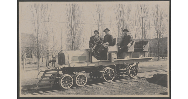 • [Portrait of three men in a pleasure locomotive]