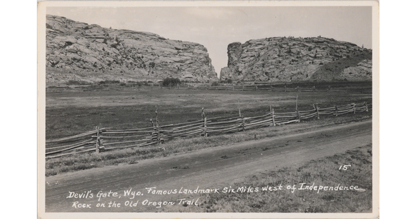 • Devil's Gate, Wyo. Famous Landmark Six Miles West of Independence Rock on the Old Oregon Trail.