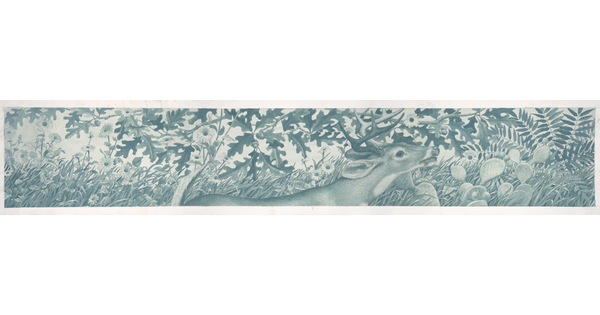 • [East interior side wall (main Hall): watercolor study of buck deer]