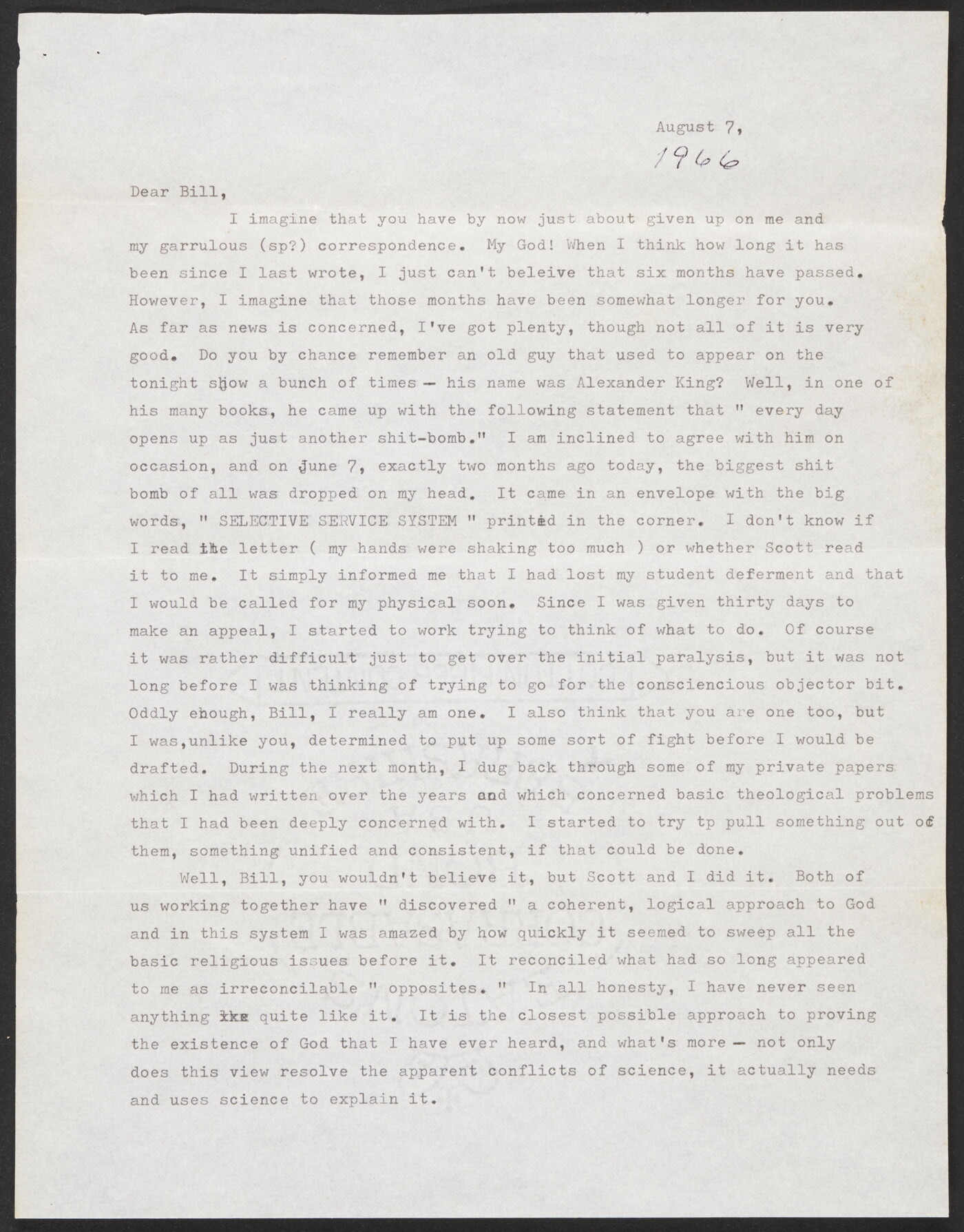 • Stuart Gentling [Stu], to Bill. August 7, 1966.