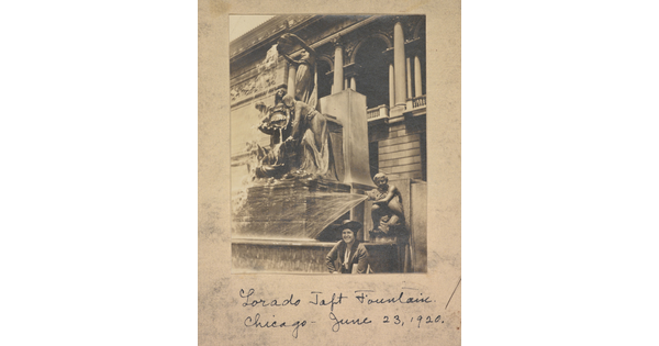 Portraits on Main Street, Jane Silvernale, Bill Williams, Eleanor "Skip" Wheeler, and Reed Wolf, Aug.10,1941 [top]; unidentified boy and dog, 1950s [bottom]