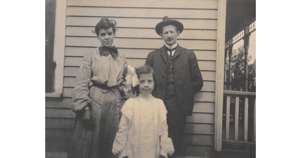 • Mr. and Mrs. E.L. Rhoadarmer and Daughter Fay at Home Milan, Illinois, June 28th 1904.
