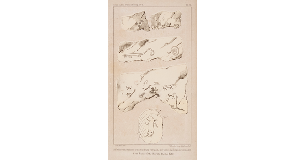 • Hieroglyphics on North Wall of the Cañon of Chaco Near Ruins of the Pueblo Chetho Kette