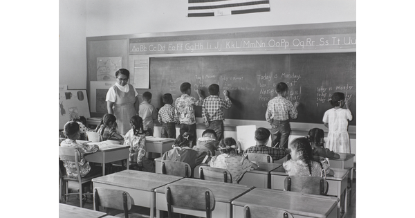 • Classroom at the Crystal School. Navaho Teacher Ester Henderson.