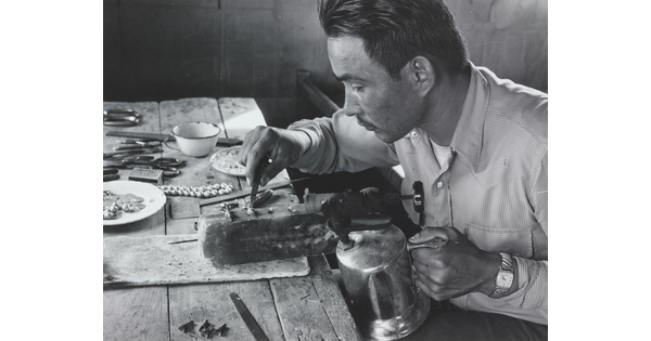 • Silversmith Making a Squash Blossom Necklace. Pine Springs, Arizona