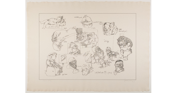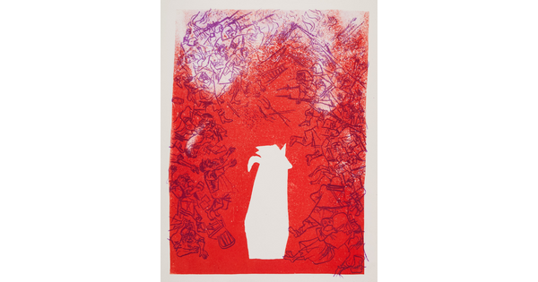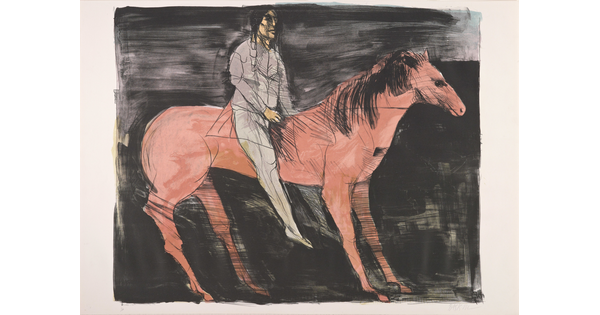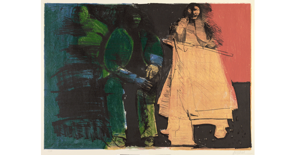 Lithograph with applied watercolor