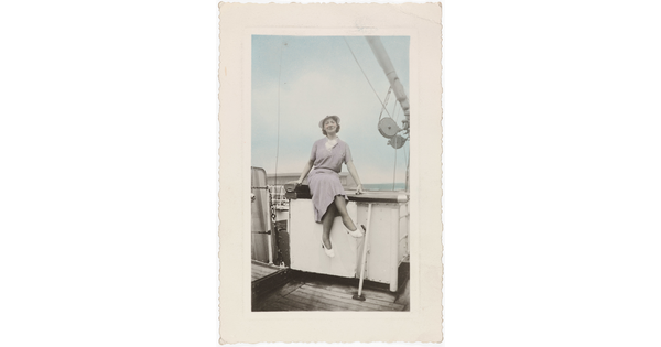 • [Woman wearing purple dress on boat]