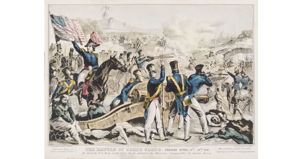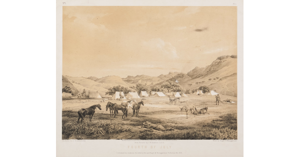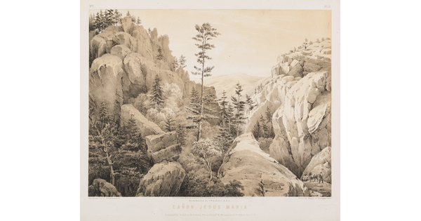 Toned lithograph with applied watercolor