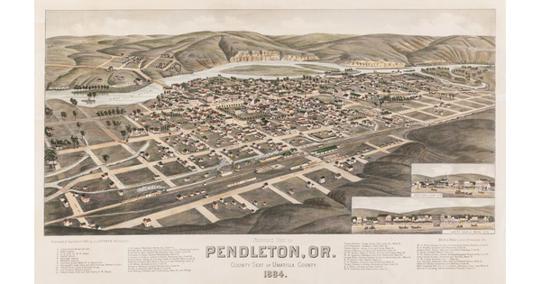 Bird's Eye View of Santa Barbara, California, 1877. Looking North to the Santa Barbara Mountains.