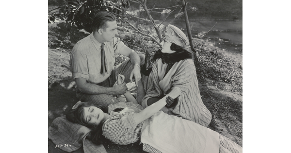 • [Gloria Swanson and Wallace Reid tending to Agnes Ayres lying on ground, "Affairs of Anatol"]