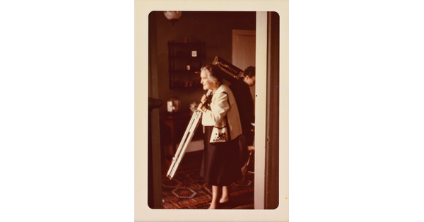 • [Clara Sipprell holding a tripod]