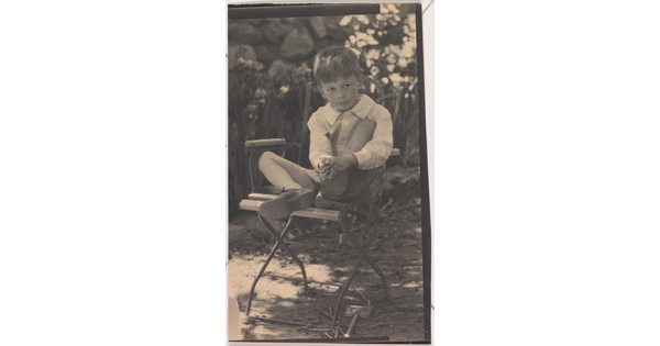 • A black-and-white studio image of a seated Black girl wearing a dress with a lace collar.