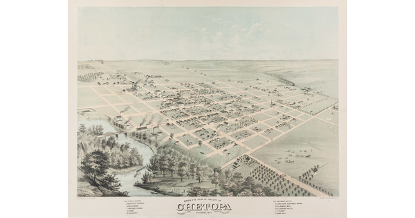 • Birds Eye View of the City of Chetopa, Kansas. 1871