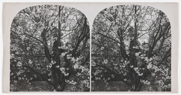 • [Children in dogwood tree]
