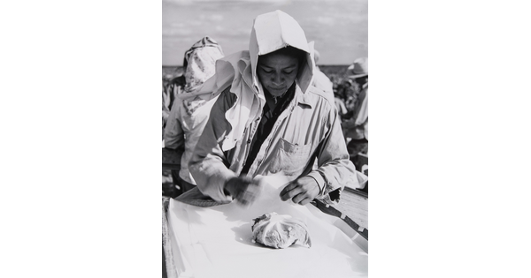 Wrapping Head of Cauliflower in Paper Before Packing in Box. On Panchita Ranch of F. H. Vahlsing, Inc., near Edcouch, Texas. Lower Rio Grande Valley, Texas