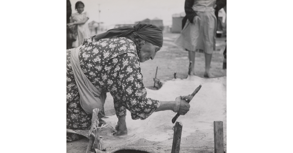 www.cartermuseum.org/.../scraping-hide-fleshing-tool-demonstration-cow-hide-preparation-moccasin-soles-p198550494