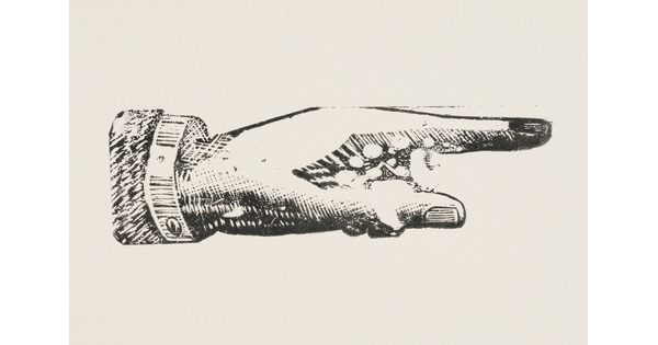 • A black-and-white print illustration of a human skull with a pistol in its jaw on top of a book and next to a bottle.