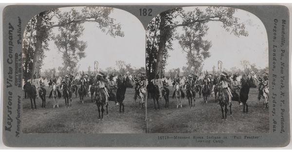 • Mounted Sioux Indians in "Full Feather" Leaving Camp.