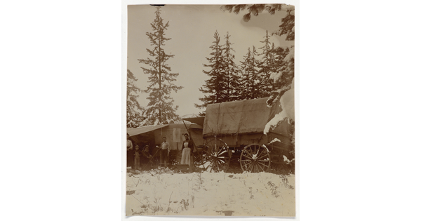 • [Group portrait in front of wagon]