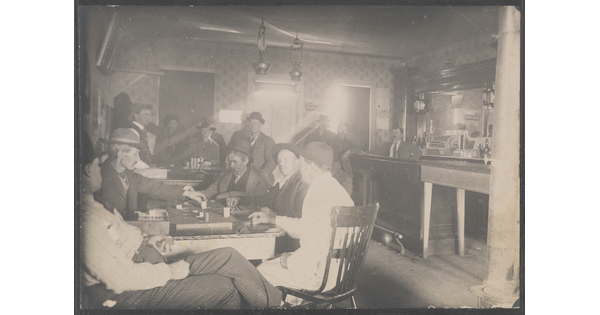 • [Interior of saloon with men gambling]