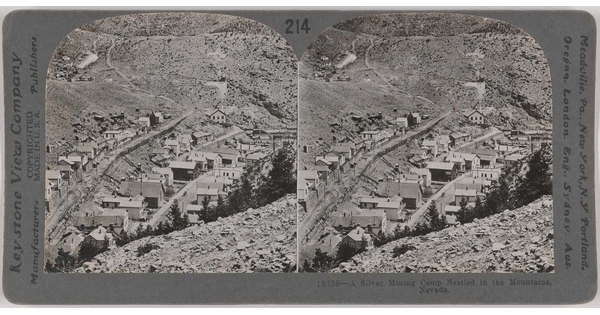 • A Silver Mining Camp Nestled in the Mountains, Nevada.