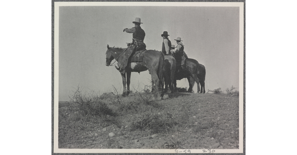 www.cartermuseum.org/.../ed-bomar-mounted-his-cutting-horse-rabbit-pointing-distance-four-turkey-track-cowboys