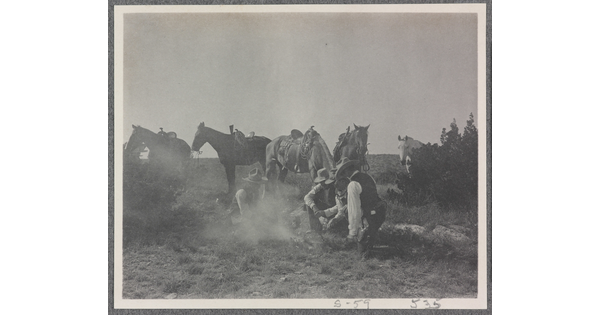 • Some Circle cowboys building a fire to prepare an evening meal while out on the range.