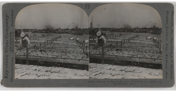 • Drying Codfish in the Sun - Gloucester and Harbor in the Distance, Mass.