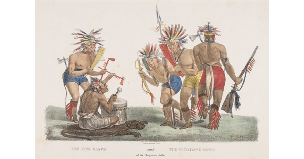• The Pipe Dance and the Tomahawk Dance of the Chippewa Tribe, Painted at the Treaty of Prairie du Chien, 1825