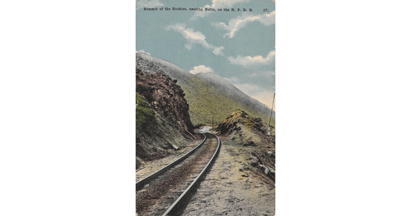 • Summit of the Rockies, nearing Butte, on the N. P. R. R.