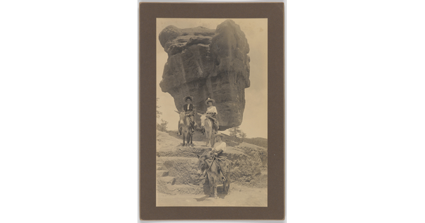 • [Group portrait on burros in front of Balanced Rock]
