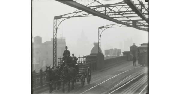 • [Horse-drawn buggy alongside elevated railroad tracks]