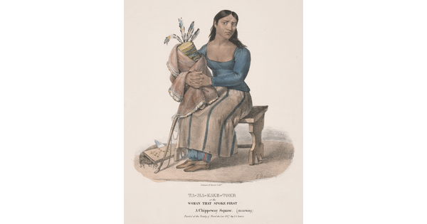 • Ta-Ma-Kake-Toke, or The Woman that Spoke First, a Chippewa [Woman], Painted at the Treaty of Fond du Lac, 1827