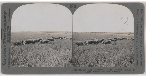 • Thrifty and Contented Hogs (Poland China) in Rich Alfalfa Pasture, Kansas.