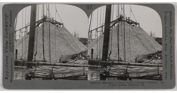 • A Mountain of Oyster Shells Used as "Bedding" for Young Oysters, Hampton, Va.