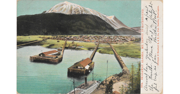 • Skagaway [sic] Alaska. Mt. Dewey in Background