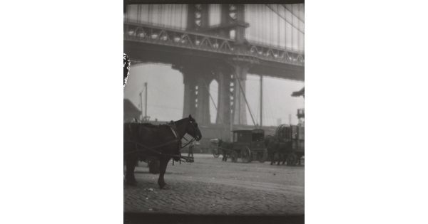 • [Horse-drawn wagons at the Manhattan Bridge, New York City]