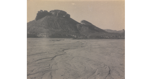 • [Plain and cloud-covered mountains]
