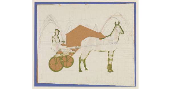 Graphite, oil, colored pencil and crayon on paper mounted on painted cardboard