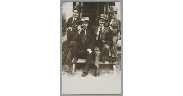 • [Four women in suits and hats, smoking cigars]