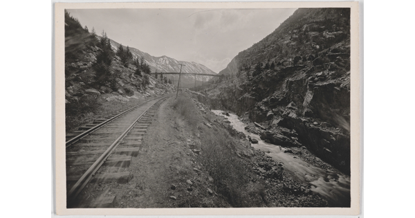 • [Railroad tracks through canyon]