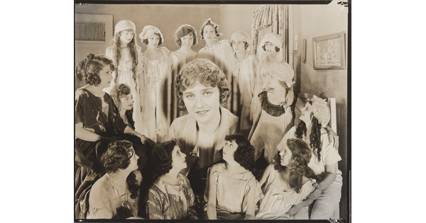 • [Agnes Ayres portrait, surrounded by young women, "Forbidden Fruit"]