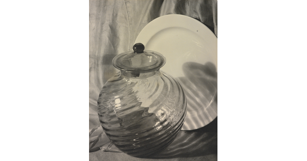 • [Still life with glass jar and platter]