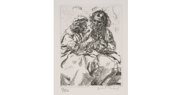 Lithograph with applied watercolor