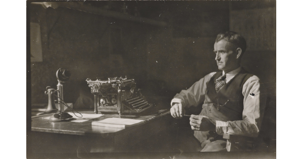 • [Man at desk with typewriter and telephone, Creede, Colorado]