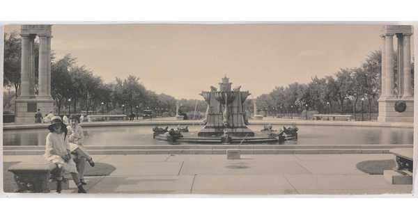 • [Girls in front of a fountain]