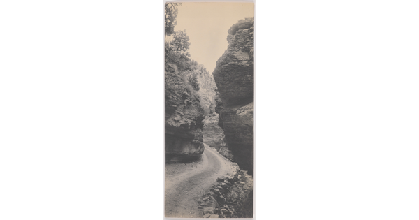 • [Mountain road and rock formations]